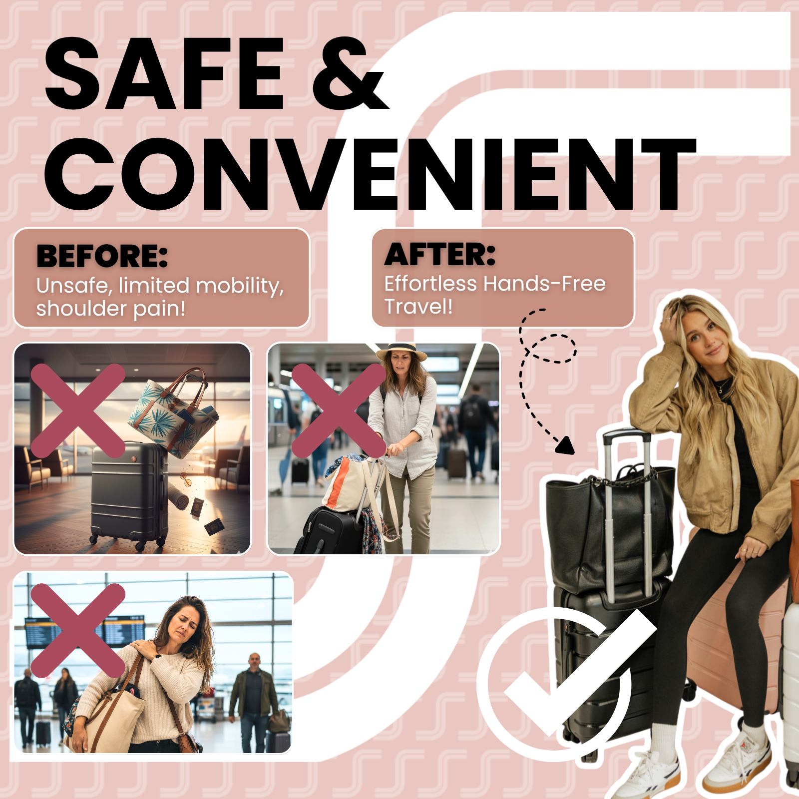 Perfect for travelers seeking both fashion and ease, the Trolley Snap ensures you glide through airports, cruise terminals, or train stations without juggling multiple bags. Make your travel experience smoother, more organized, and stress-free with this must-have travel accessory!