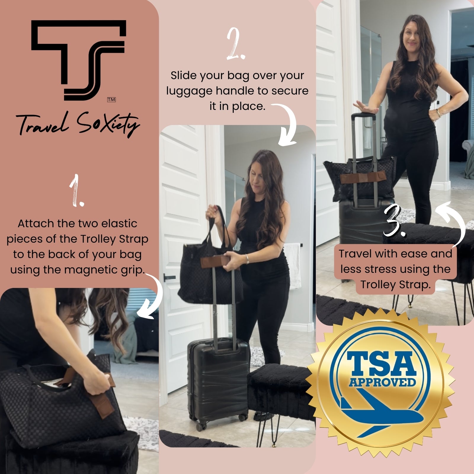 With the Trolley Strap I can now travel with my purse knowing that is is safely secured with my suitcase. It gives me such peace of mind knowing that the magnets are strong and won't fall off.